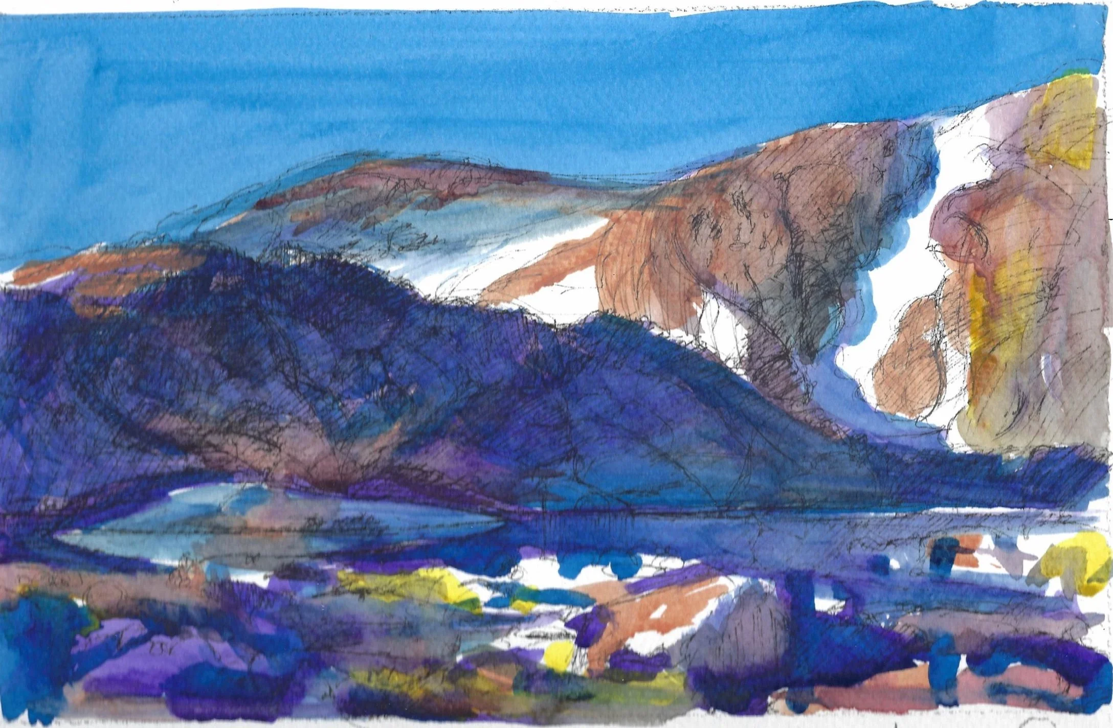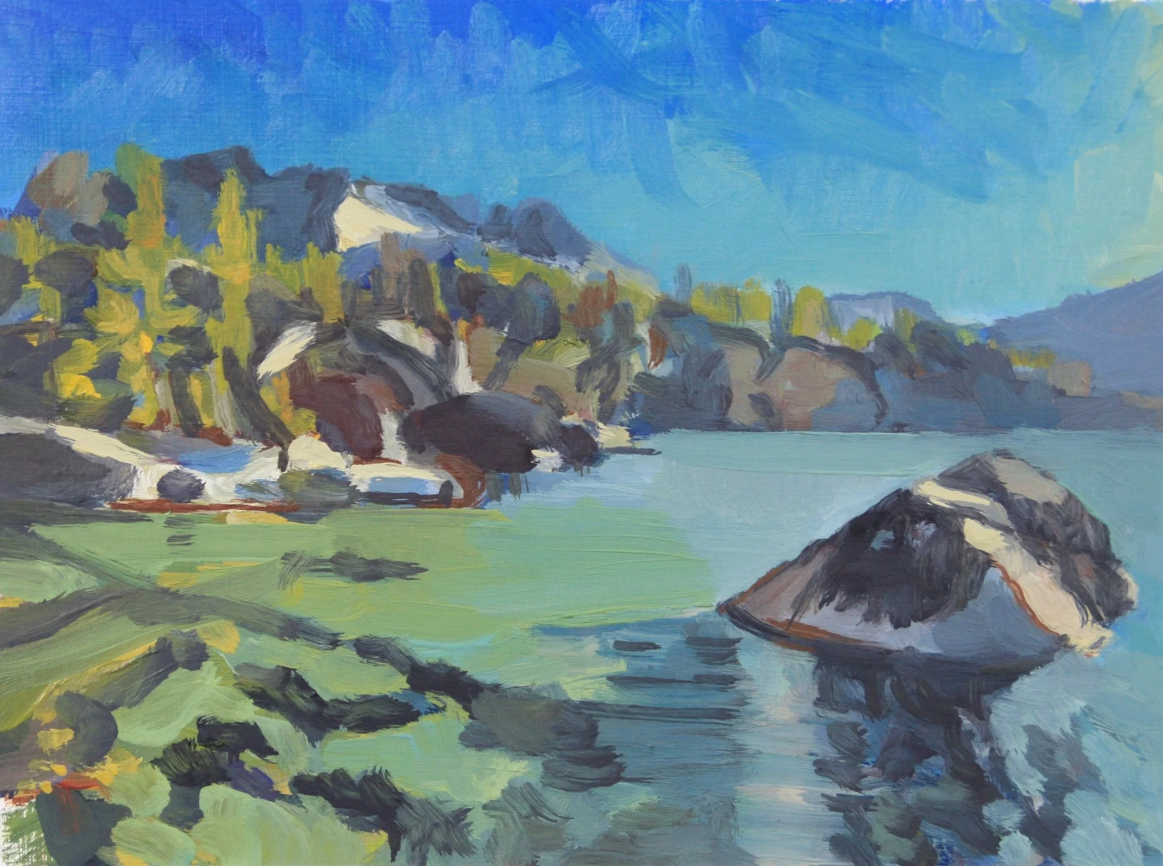 "Thru-Hike Revisited; Lake Viviane" - color study #2 / Oil on paper / 13" x 16" (matted) / 2021 / The Enchantments, Washington / Available