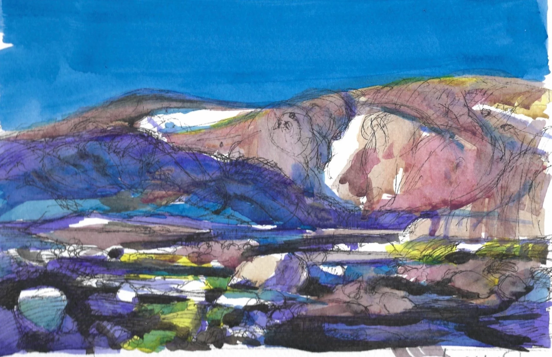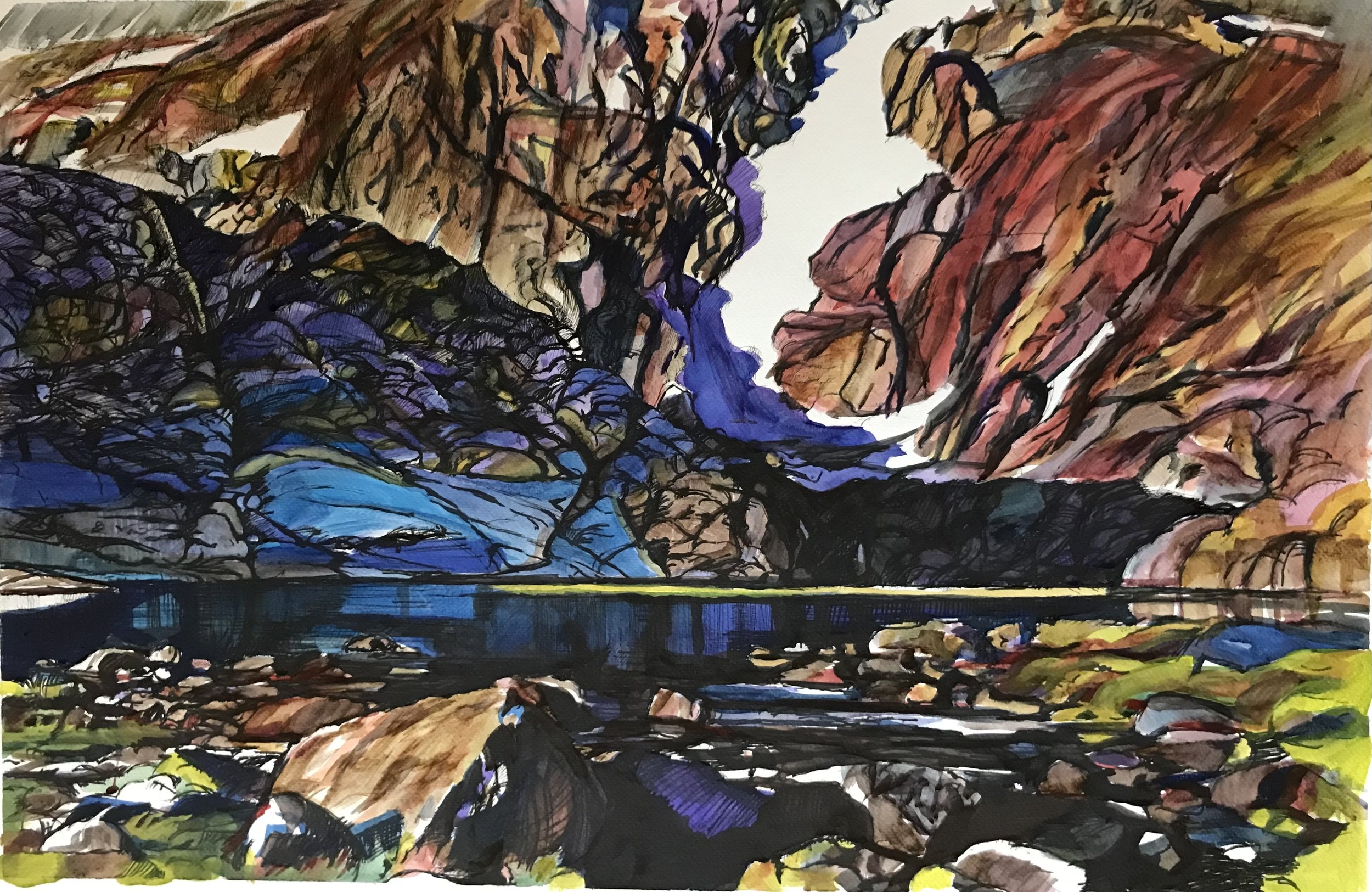 "Shimmer" / Pen, ink and watercolor on paper / 18" x 27.5" / 2022 / Upper Core, The Enchantments, Washington