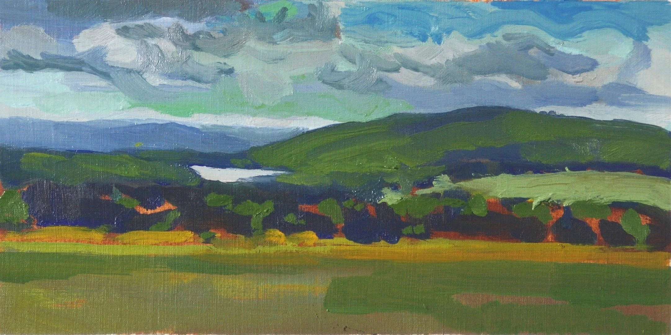 Mudge Pond - color study #2 / Oil on paper / 6" x 12" / 2021 / Lakeville, Connecticut / SOLD