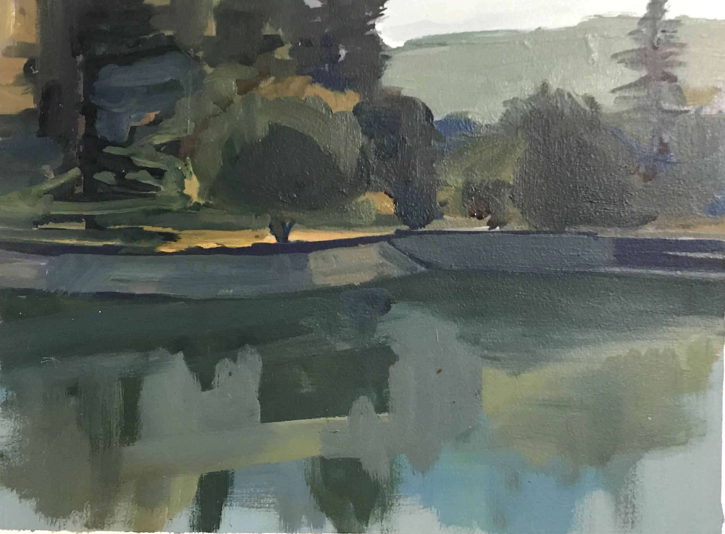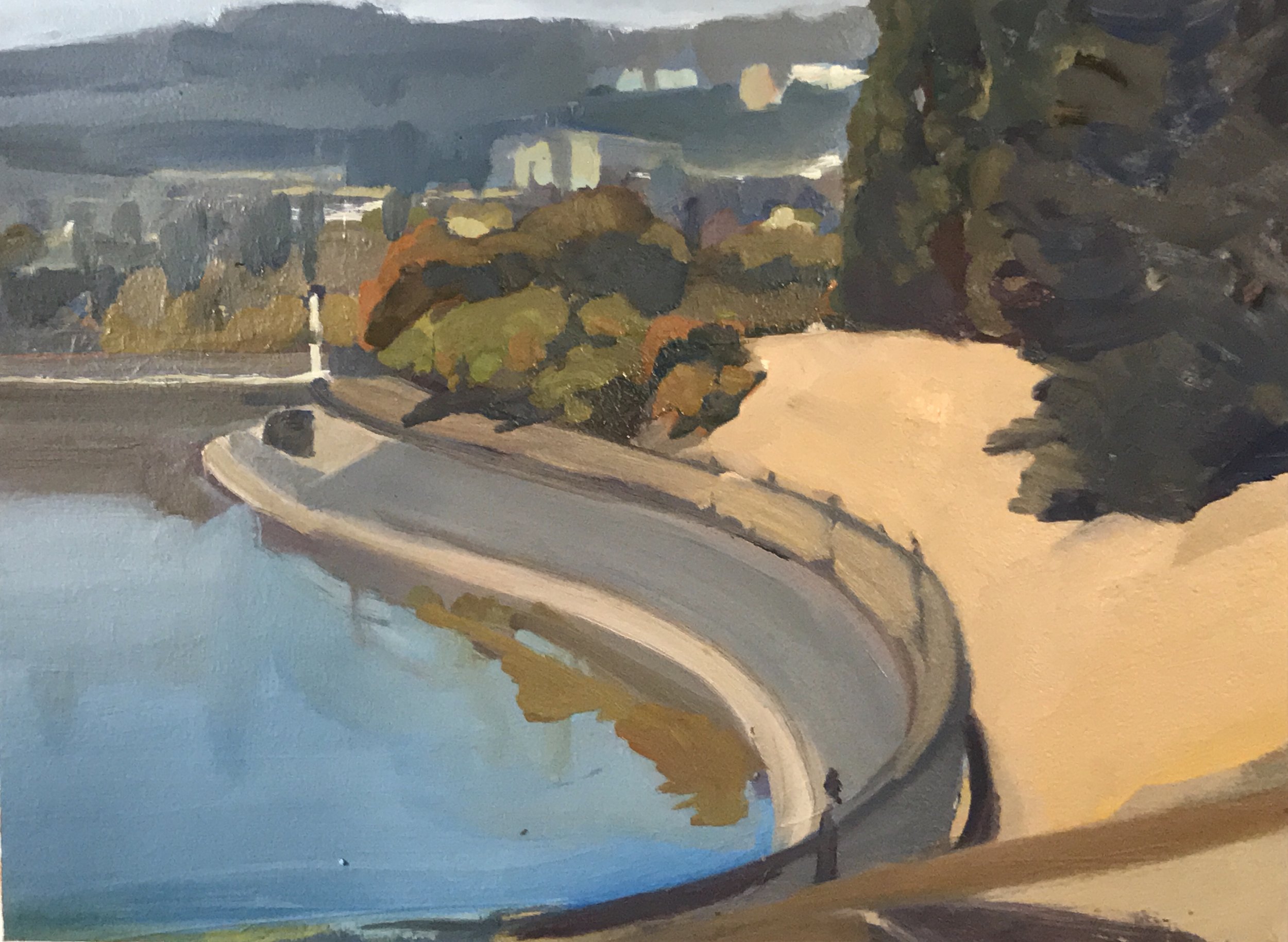 Reservoir Study #1 / Oil on paper / 12" x 16" / 2020 / Mt. Tabor Park, Portland, Oregon